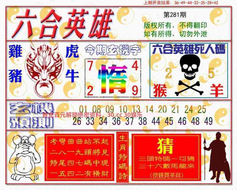 282期:电脑推算/正版解一肖输精光/玄机解一肖/六合皇五字
